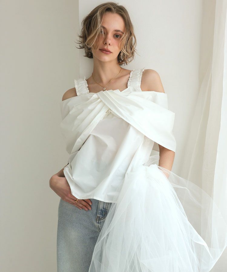 ショルダーリボンブラウス