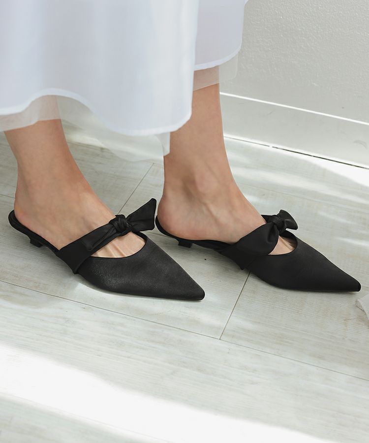 サテンリボンミュール