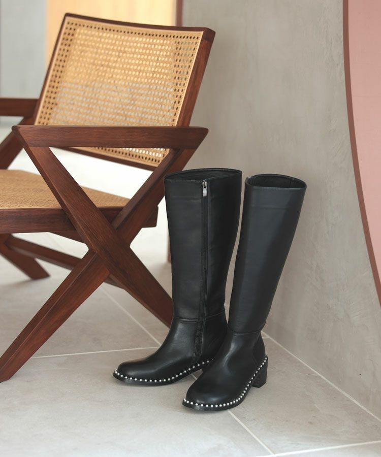 ショートボトムスやロングスカート、ワンピースとも合わせやすく、ポイントにもなるロングブーツは今年のマストアイテムです。