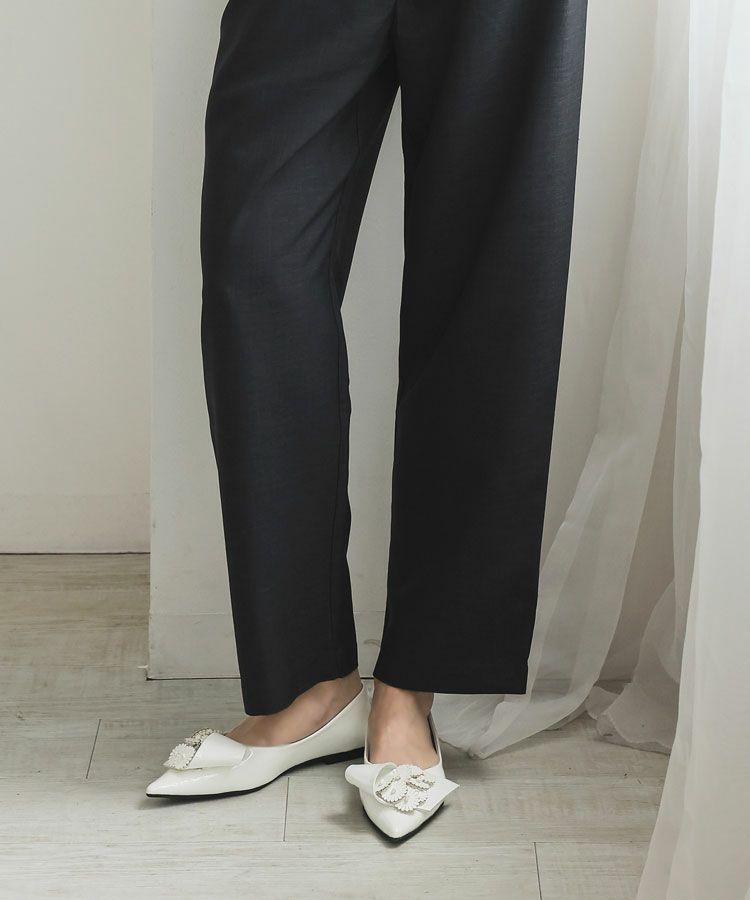 シアーとサマーニットのドッキングがモノトーン好きな私は一目惚れ。POPUPでも大人気なパンツは、今からのシーズンにサラッと涼しく履けます。
