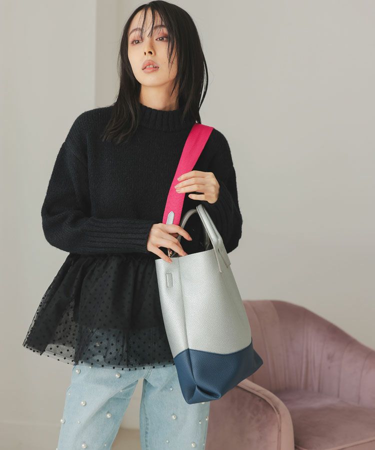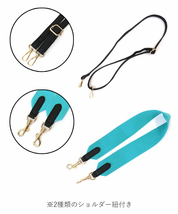 本体と同素材同色のショルダー紐、配色ショルダー紐と2種類入っているのでその日のスタイリングによって変えていただけます。