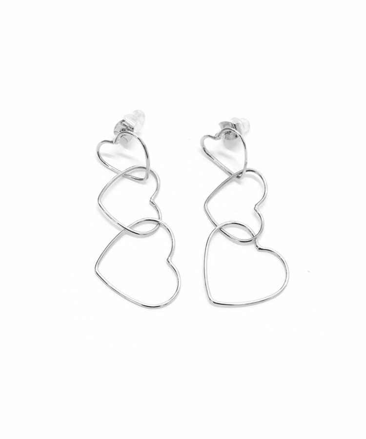 今季トレンドモチーフのハートが華奢なラインで連なるピアス。