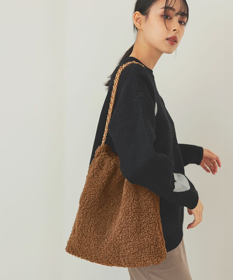 もこもこなボアとチェーンの組み合わせがカジュアルさと高級感のあるバッグ。