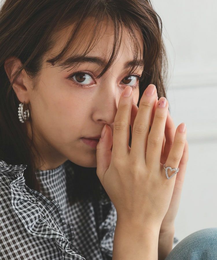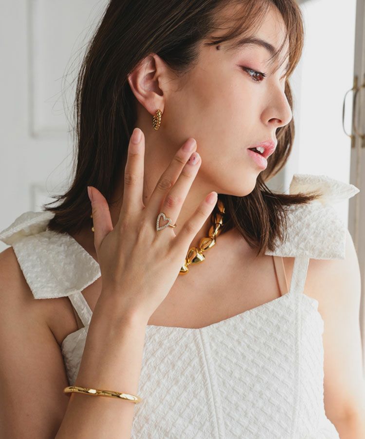 ビジューでトリミングされたハートがポイントで 女性らしく華やかな印象に。