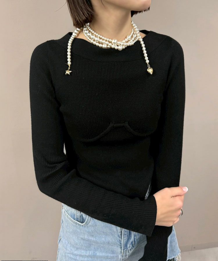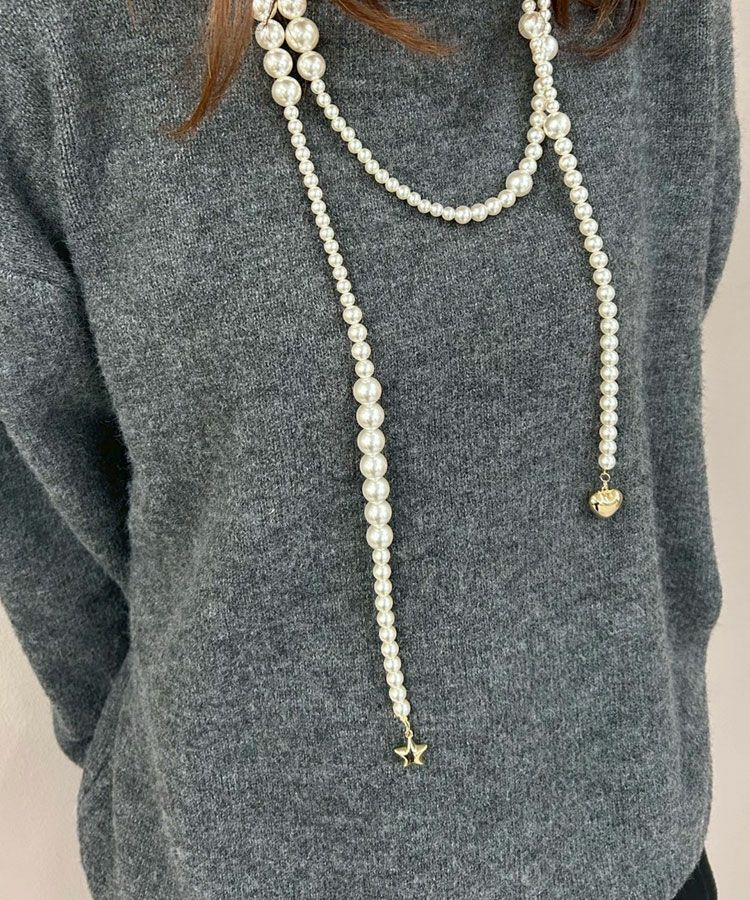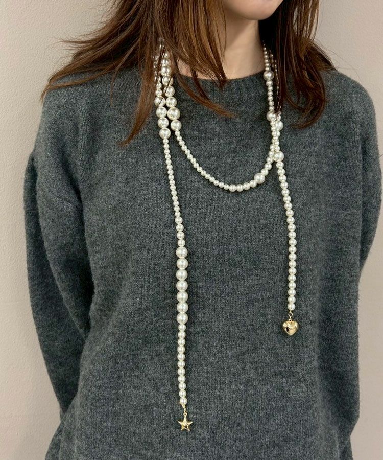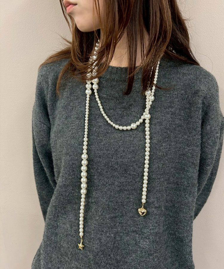 1つあるだけでトレンド感が出る、大中小の様々なサイズのパールが存在感のあるネックレス。