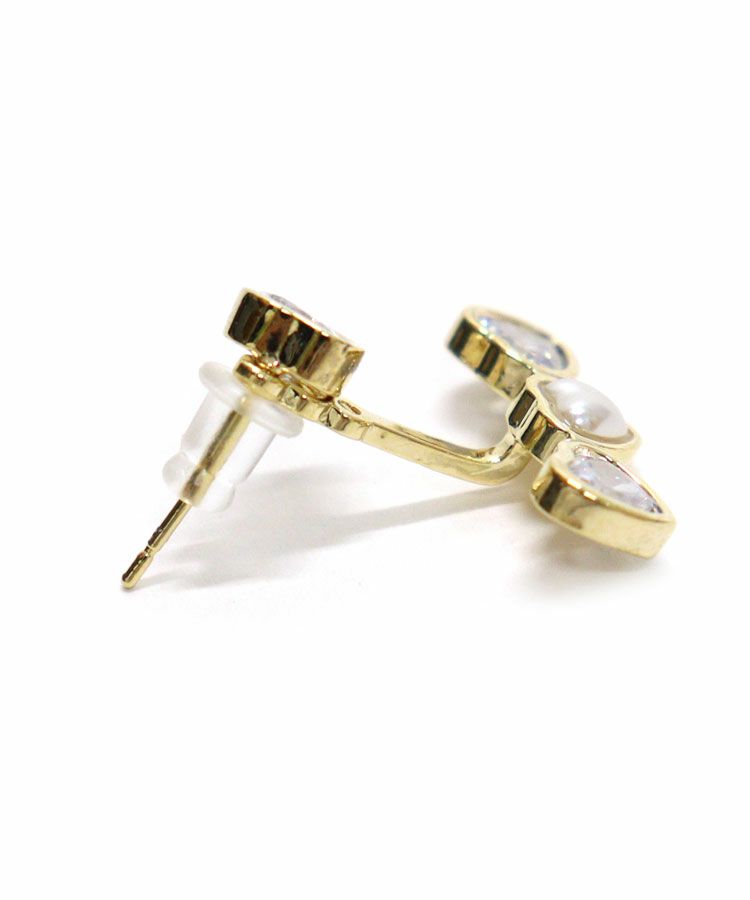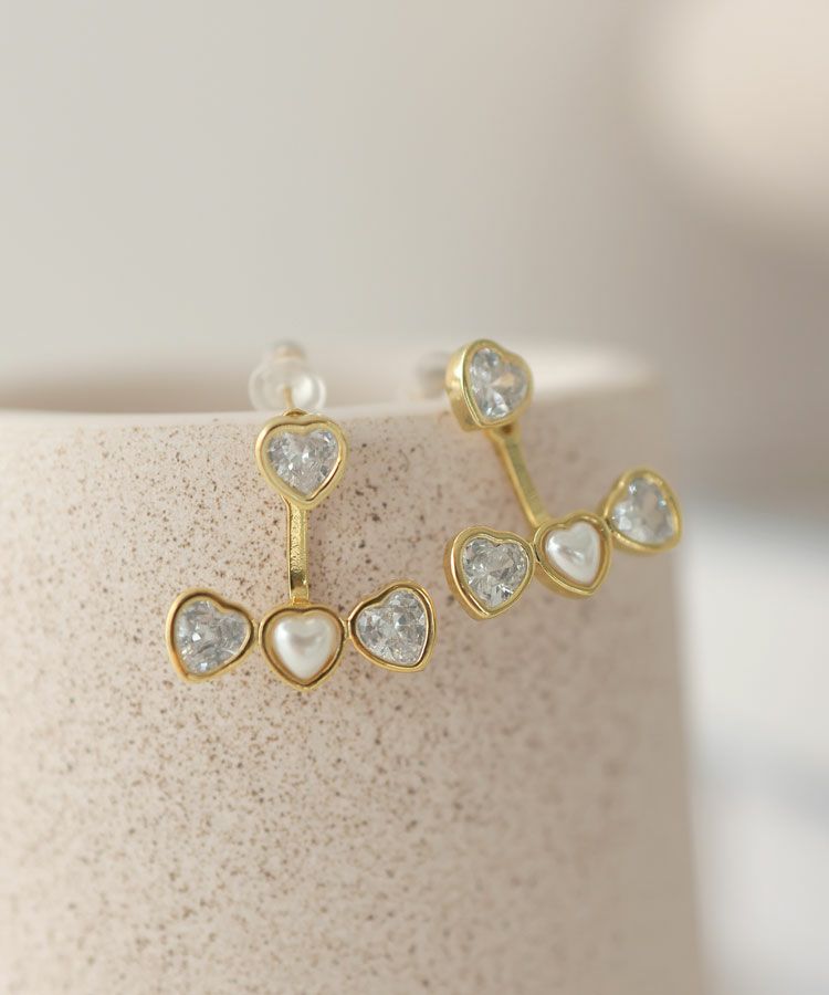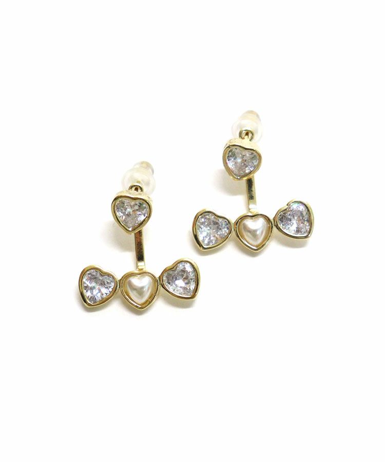 ラインストーンとパールのミニハートが連なったなんとも愛らしいピアス。