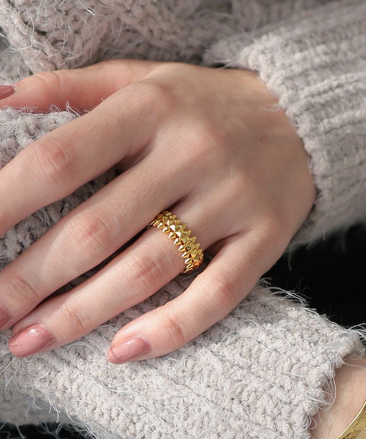 スタッズとトゲトゲが一つになったデザイン性のあるリング。