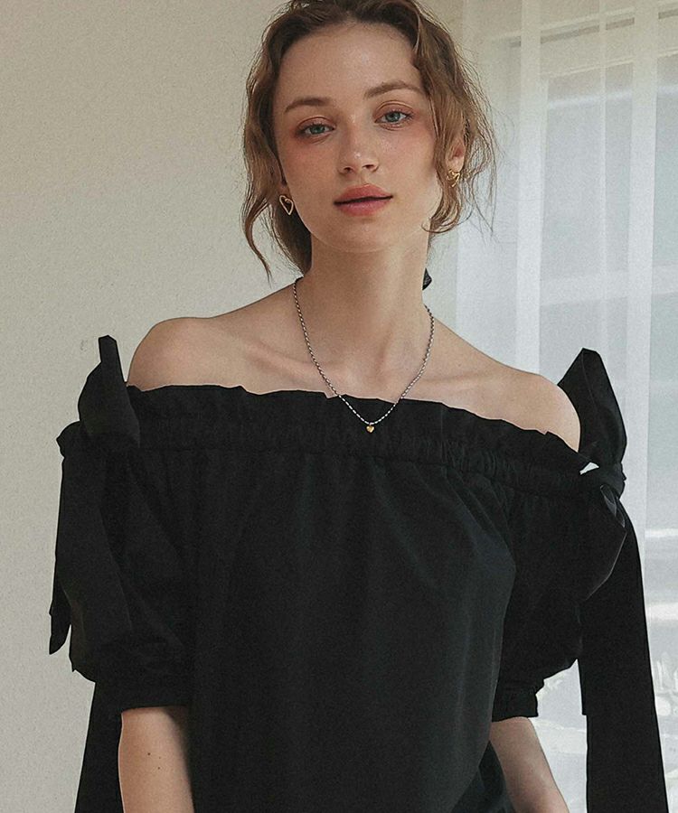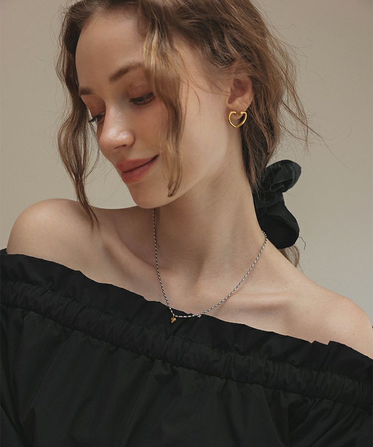 小ぶりのハートがさりげなくかわいらしい印象のネックレス。
