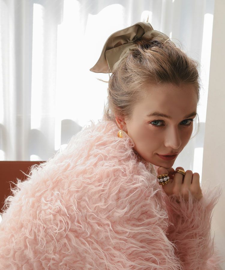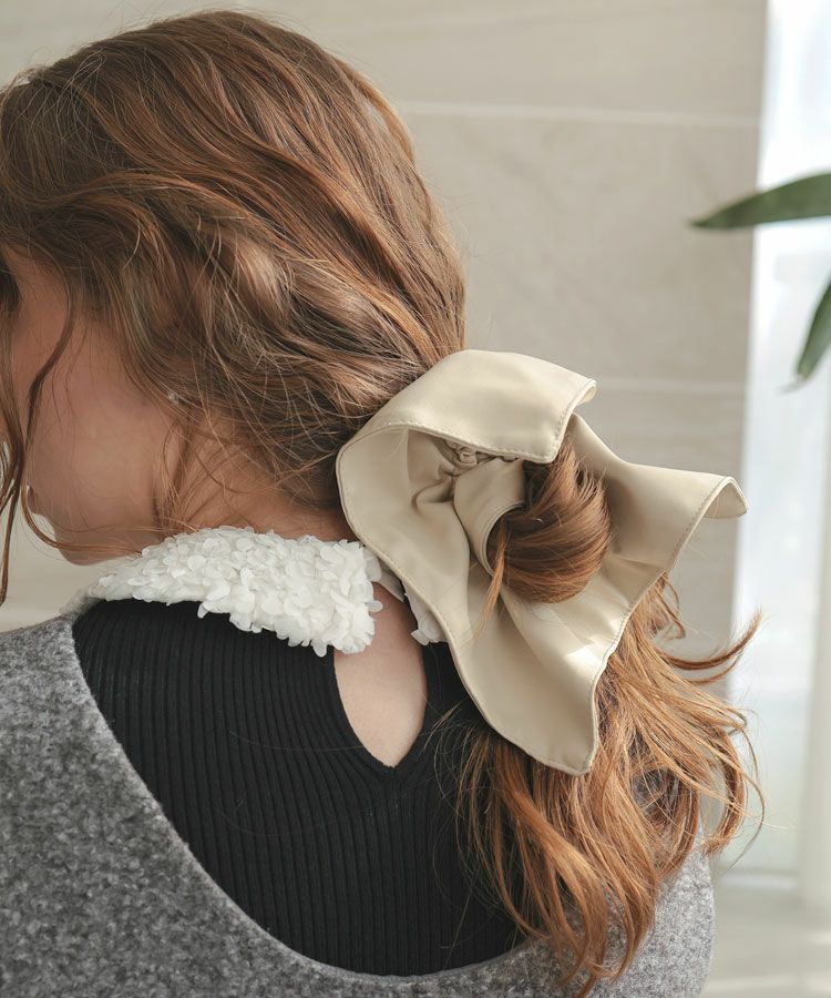 存在感のあるサイズ感で、シンプルなまとめ髪も一気にこなれた印象に。