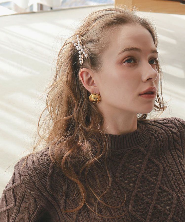 可愛らしいパールのついたクロスデザインのヘアピンは、いつものまとめ髪に差し込むだけでこなれ感のあるスタイリングが完成します。