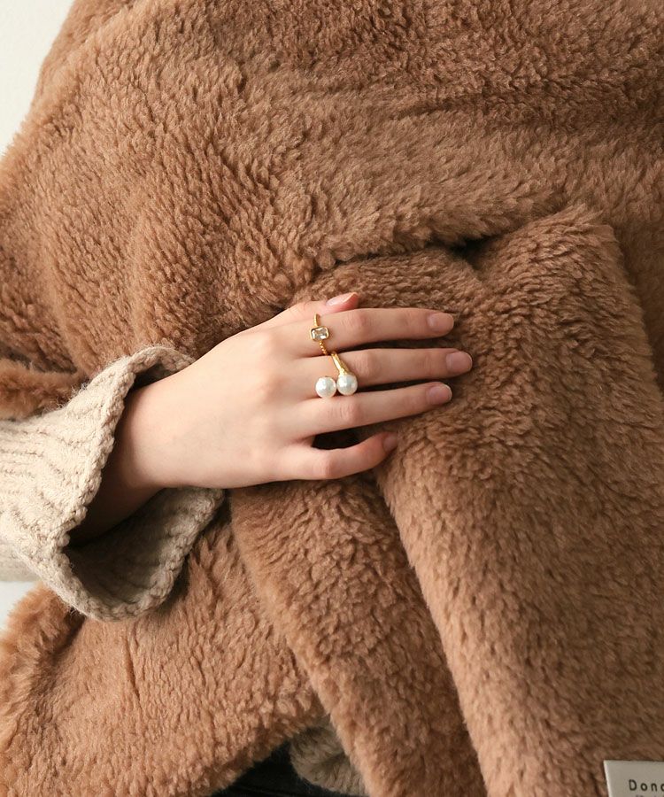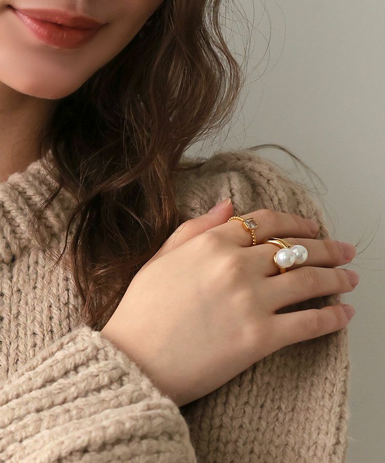 大粒のパールが手元を華やかにしてくれる、ダブルのパールをあしらったリング。