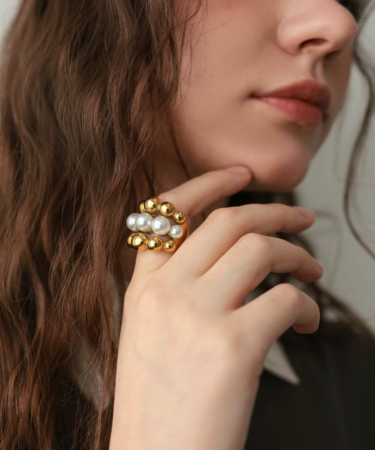 立体的で艶やかなメタルボールとパールが、手元を華やかに演出します。