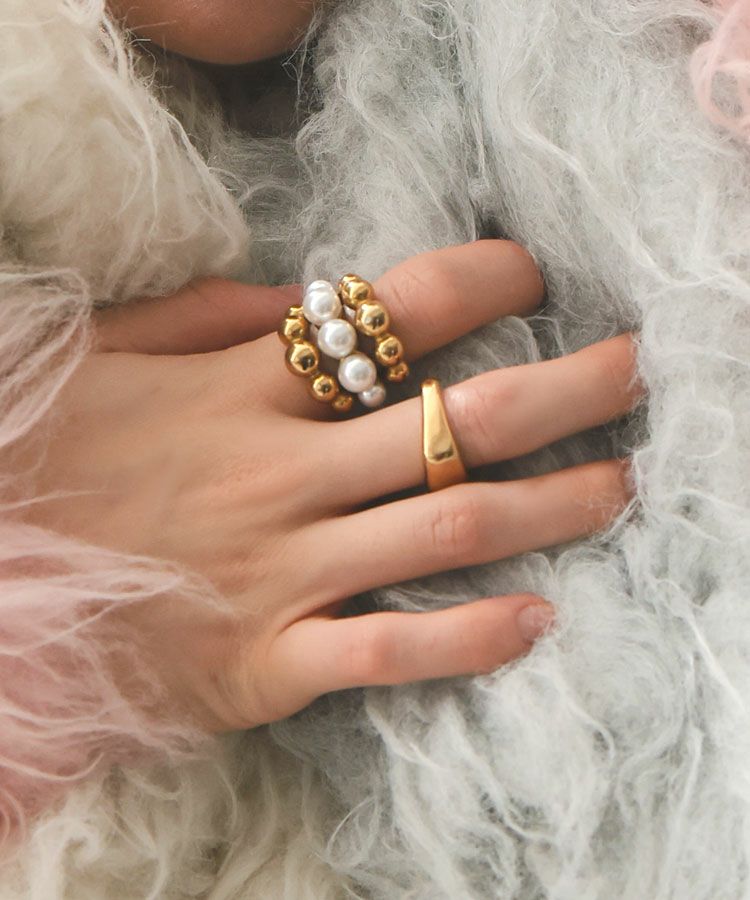 シンプルにこれだけでつけるのはもちろん、他のリングと合わせて着けるのもおすすめです。