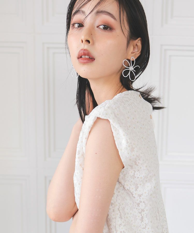 シンプルなコーデのポイントにおすすめの大きめなお花ピアス。