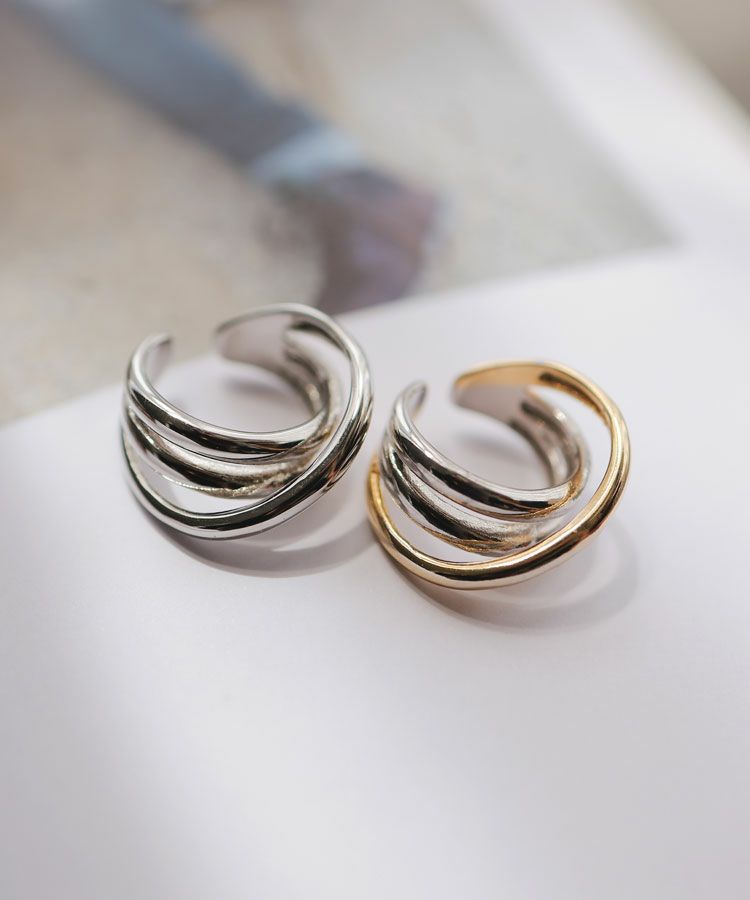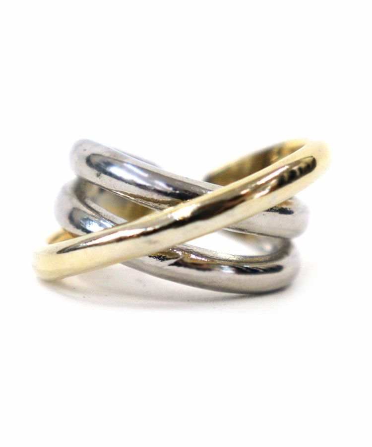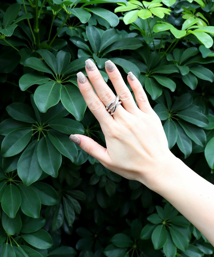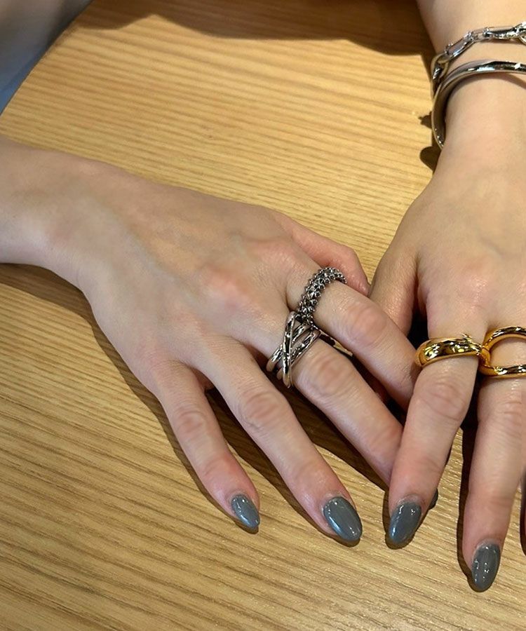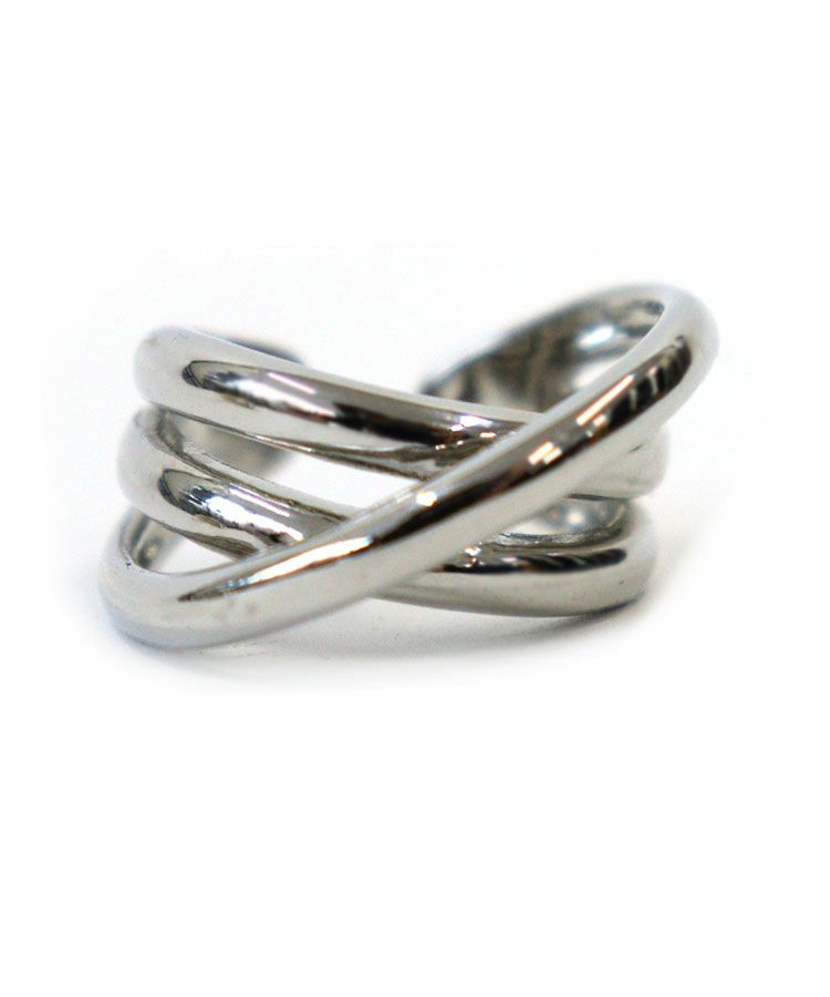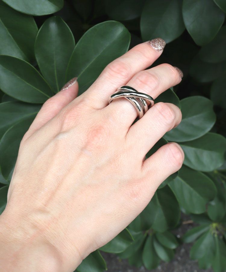 クロスにレイヤードされたデザインがオシャレなリングです。