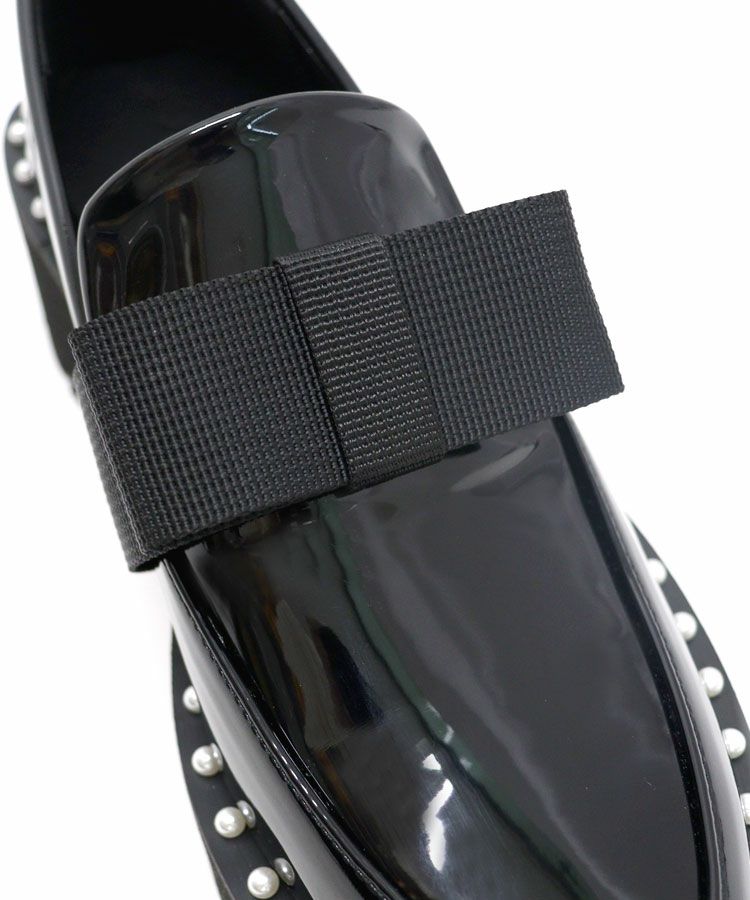 ソール部分には一周施された小さめなパールと、甘すぎないしっかりとした生地のリボンをプラスする事でカジュアルから綺麗めと幅広いスタイリングをお楽しみいただけます。