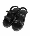 買ってよかった名品パンツ。ウエストフリルがポイントで、真っ黒じゃないニュアンスブラックカラーがとてもお気に入りです。アキロンコラボサンダルもブラック仕様でモードに仕上げました。