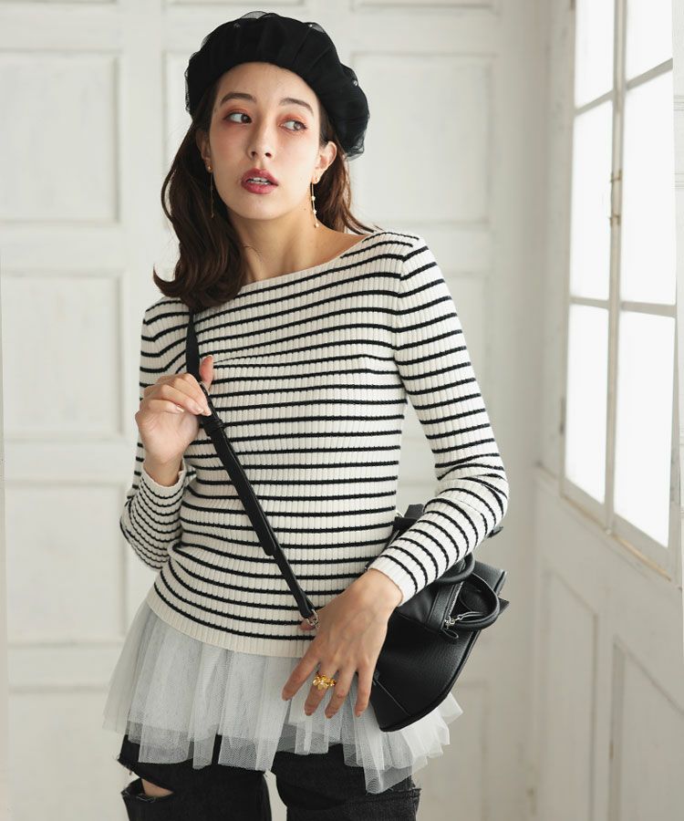 大人ガーリーなスタイルにはもちろん、モードやカジュアルにも幅広いファッションに取り入れれます。
