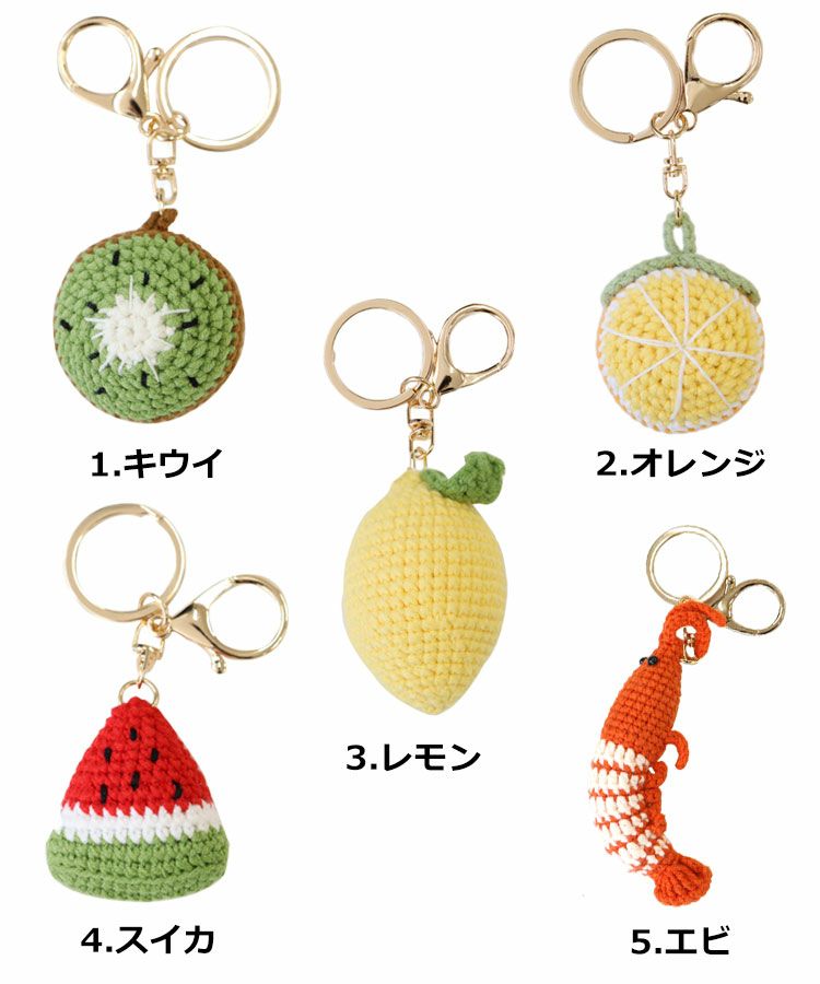 1.キウイ、2.オレンジ、3.レモン、4.スイカ、5.えび