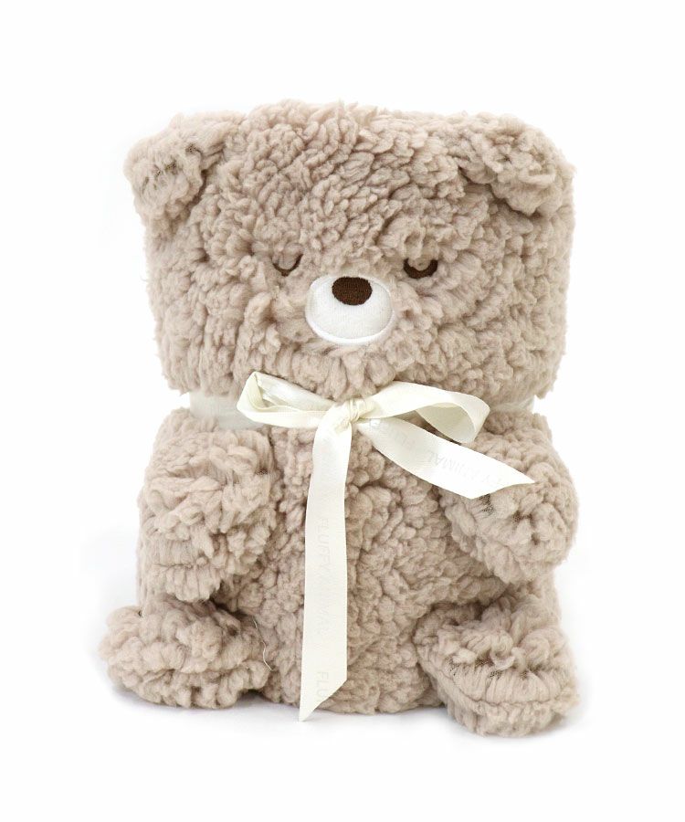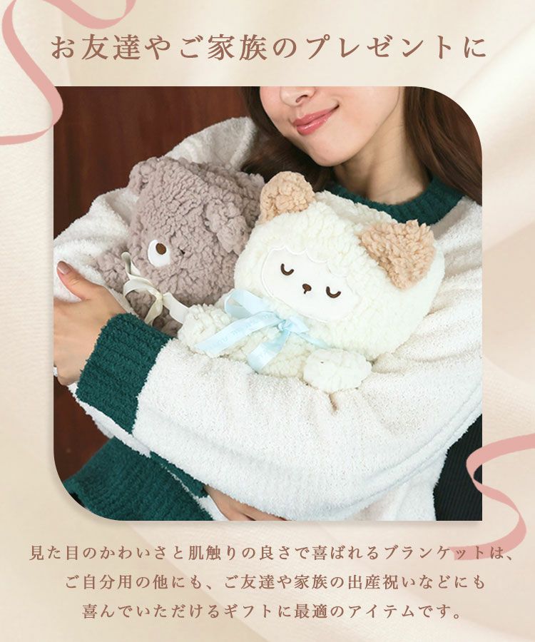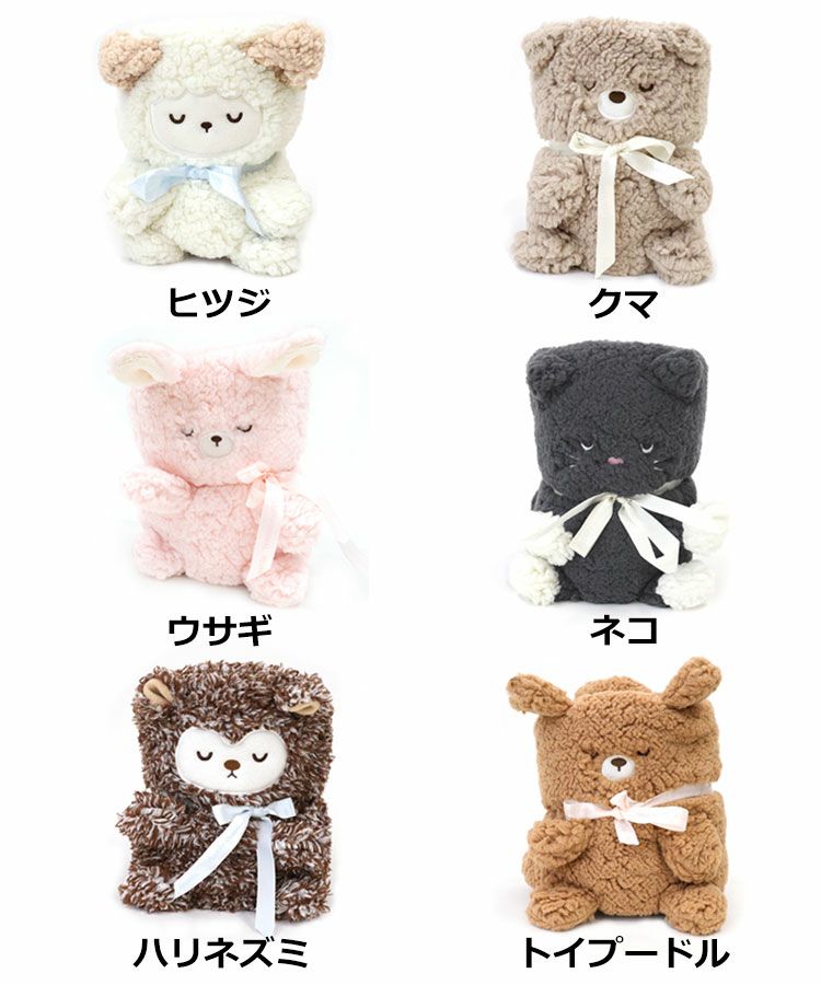くるくる巻いてリボンを結ぶと、かわいいアニマルに変身するひざ掛けです。