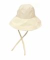 黒のアキロンさんコラボのハットやキャップも持っていますが、雨の日や水遊び用に撥水加工のハットが魅力的で買いました。 自転車に乗る時は紐をくくって使い、撥水キャップと用途で使いわけています。