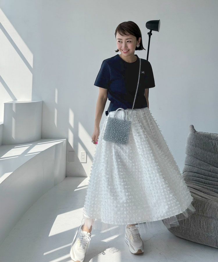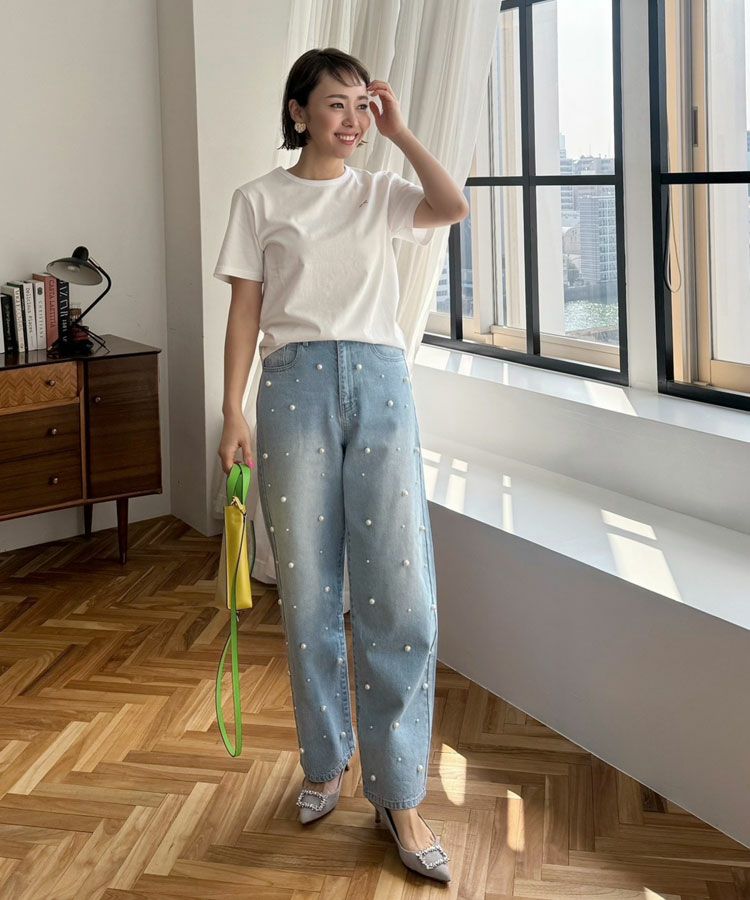 ワンポイントのリボン刺繍がフェミニンに演出してくれます。