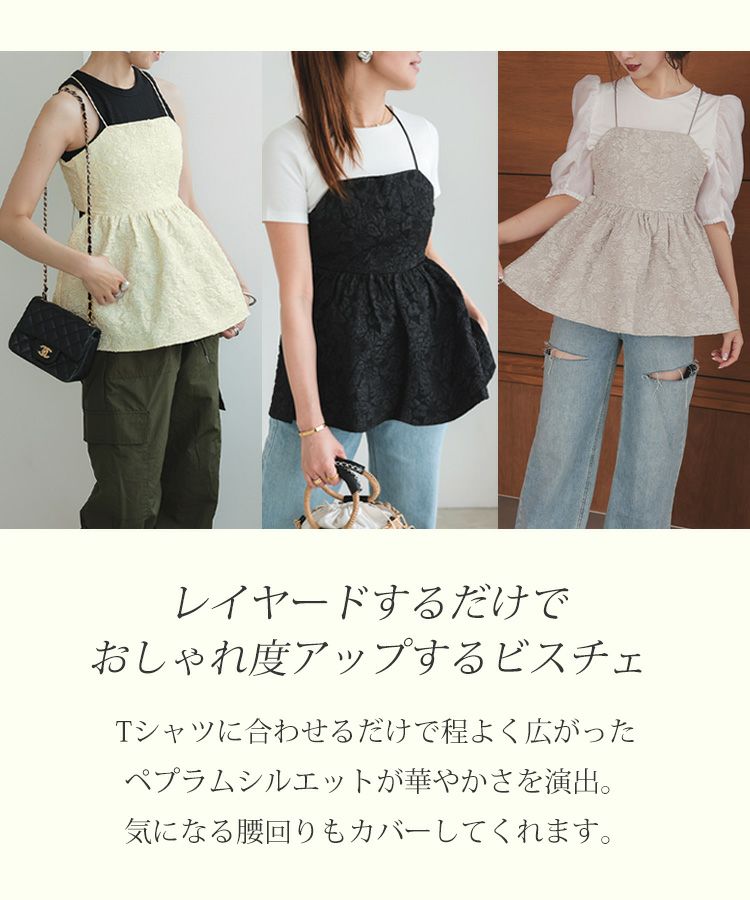 ふわっとボリュームのあるシルエットが華やかさを演出する、今季マストのキャミビスチェ。