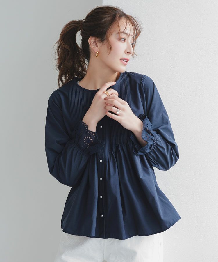 フロントにピンタックデザインを施した上品な印象のブラウス。