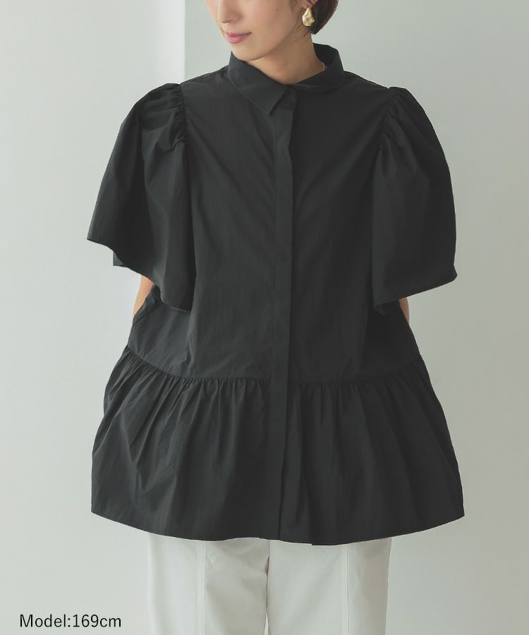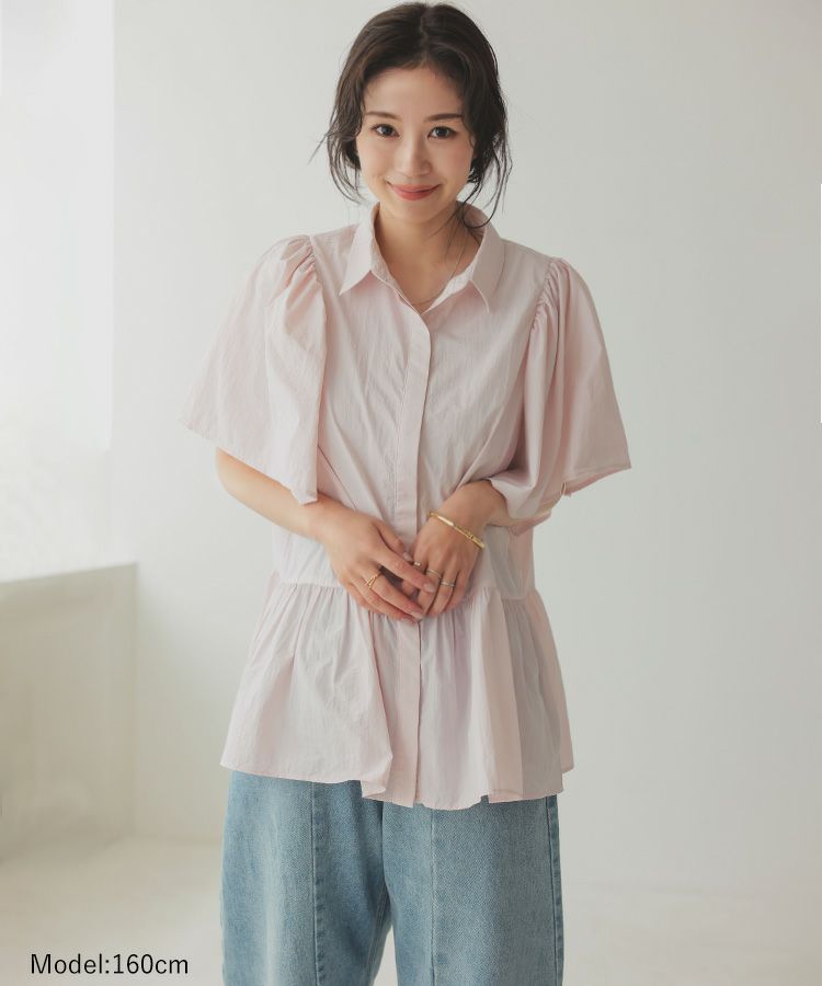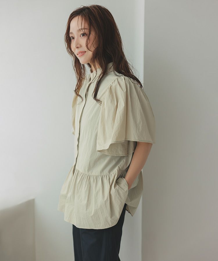 ふんわりした袖と裾のシルエットがかわいい撥水ブラウス。 スッキリ見えするクロップドパンツでコーデするとバランス◎ ウエスト総ゴムで、楽なパンツは暑い日の必須アイテム。