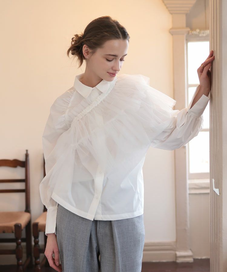 ブラウスとセットのチュールサッシュはマルチwayで使える便利なアイテム。 真夏はTシャツにも合わせて着回したい。