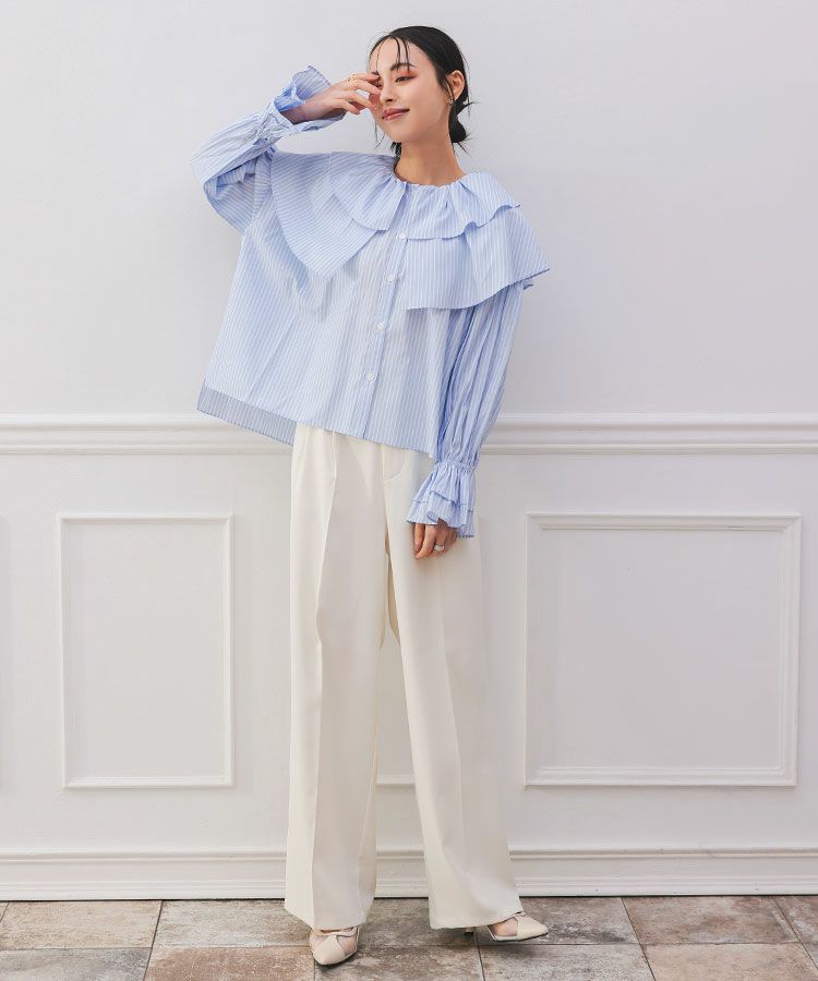 ストライプシャツが春コーデの気分♪寒い日は、中にタートルINで今から着れちゃう。スウェット合わせでカジュアルダウンするのが今の気分。