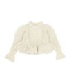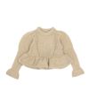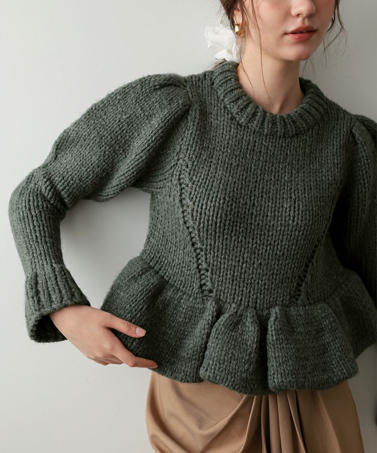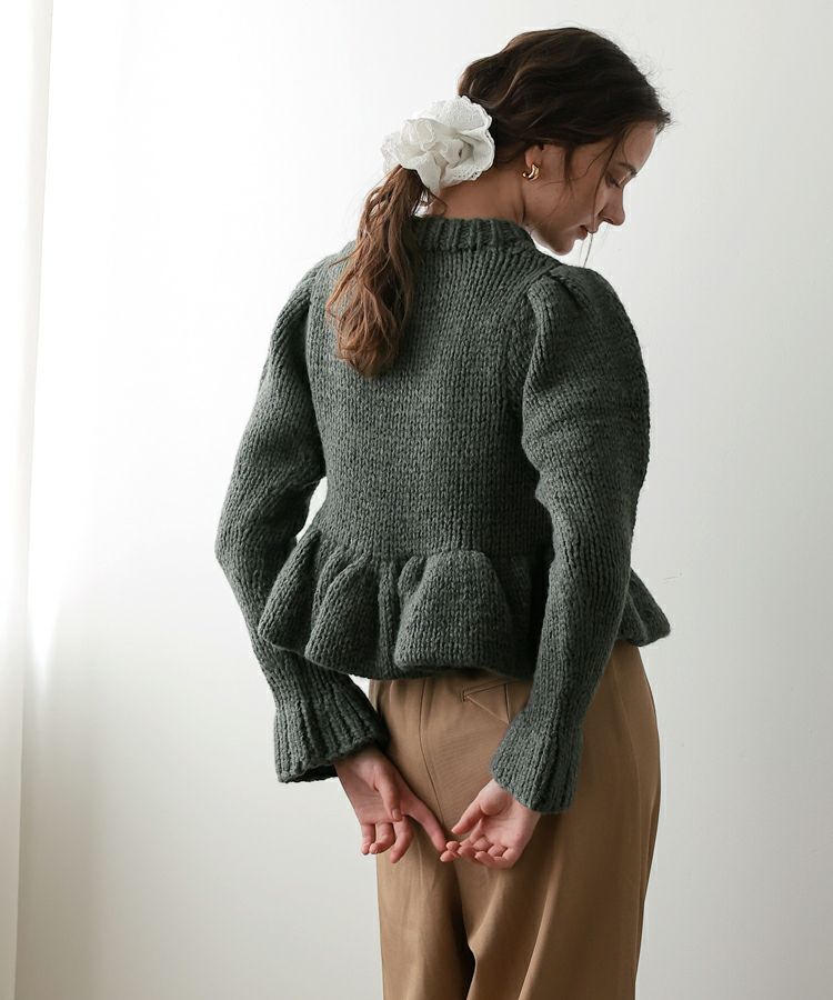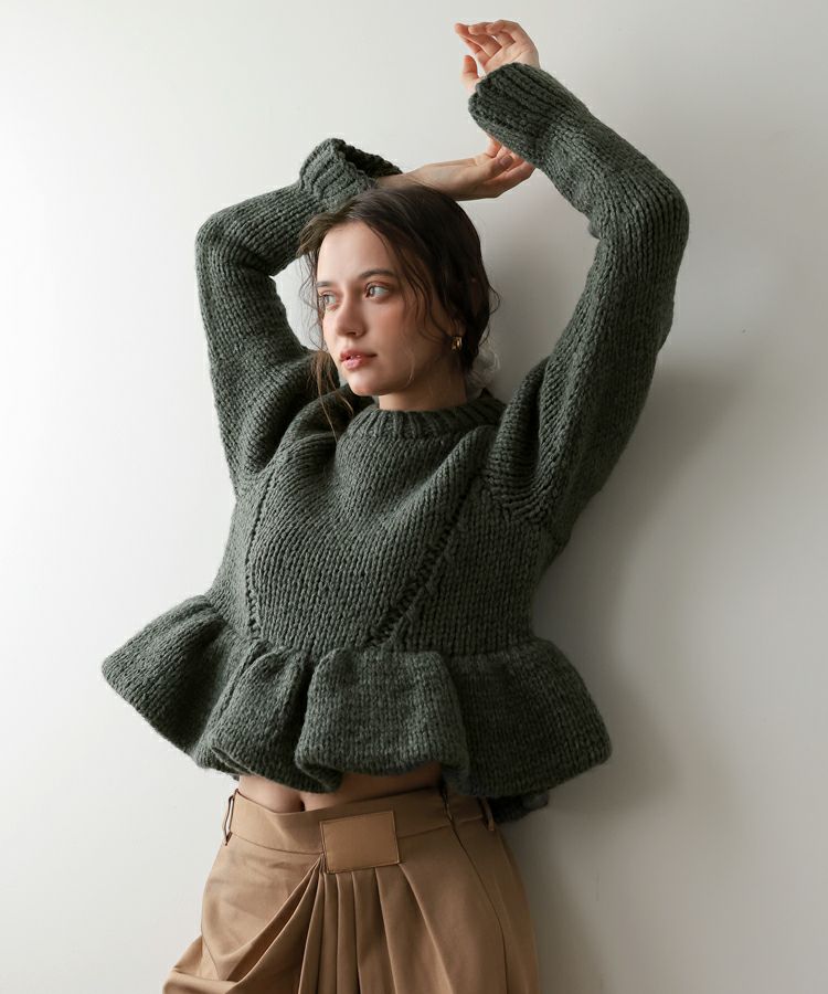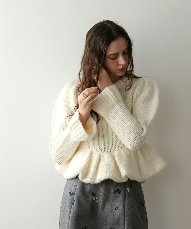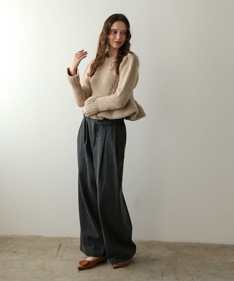 手編みの温もりを感じるホワイトのハンドメイドニットに、ドットキルトパンツの軽やかな表情をプラス。やわらかさと遊び心が程よく調和した、冬のこなれカジュアルスタイルです。