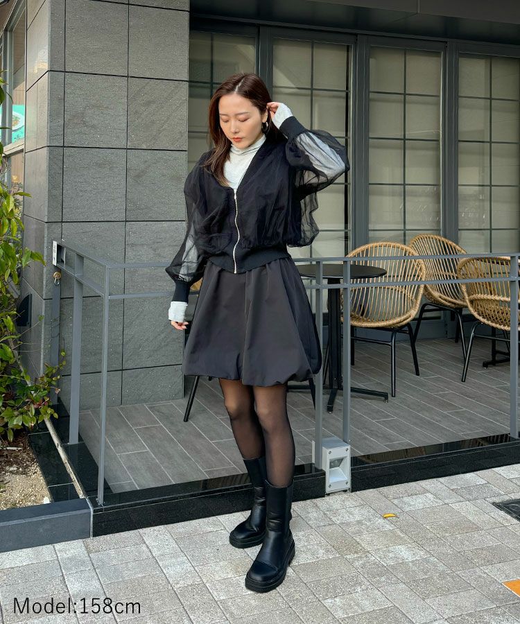 ギャザーをたっぷりと入れる事で立体的なシルエットに仕上がり、ボリューム感と素材感が女性らしさを高めてくれます。