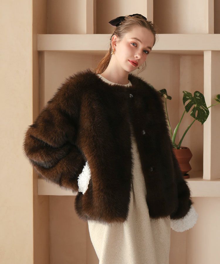 ブラウンはバブリーになるかな?と心配でしたが、着てみるととてもオシャレに見えてブラウンにしてよかったです。 他のブランドでもファージャケット色々出てますが、このお値段で襟が取り外しできて、この毛並みの品質の物はなかなか無いと思います! 襟なしで着るのがお気に入りです!
