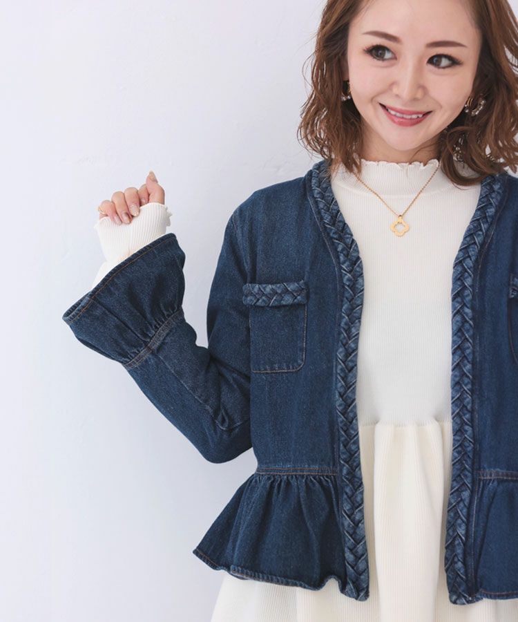 本格的に秋到来。 コラボのデニムジャケットをプラスで夏のスタイリングが一気に旬なコーデに。 ペプラムデザインで腰位置が高く見えるのも好ポイント。