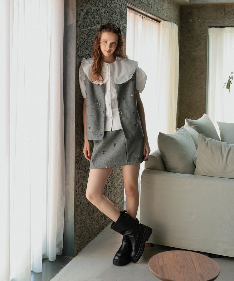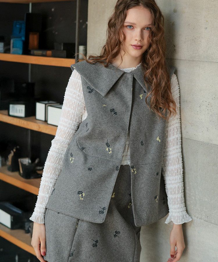 存在感のある大きめの襟は取り外しも出来る2wayデザインで、その日の気分に合わせてアレンジが出来るのも嬉しいポイント。
