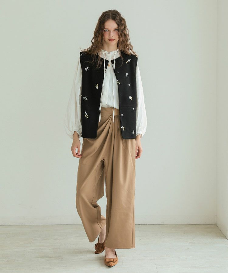 スッキリとしたデザインで、カットソーやブラウス合わせはもちろん、ニットやワンピースとのレイヤードもオススメ。