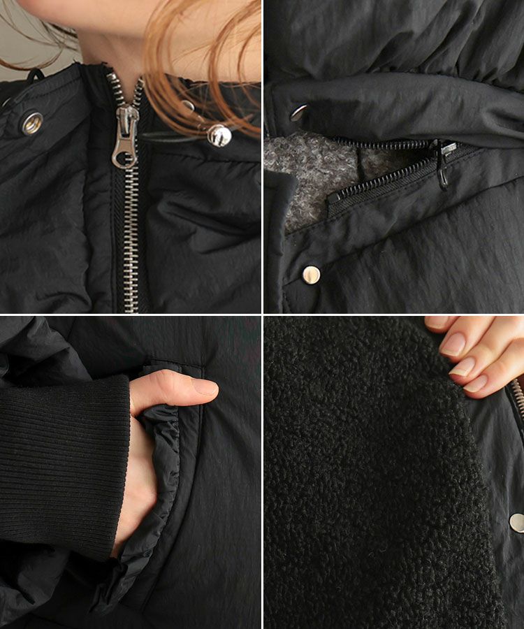 ショートダウンの裏地はボアに、ポケットの内側にはフリース地になっているので手を入れるだけで暖かいです。