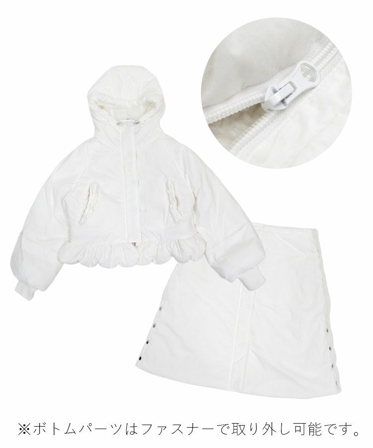ウエストの切り替え位置部分のファスナーを取り外すと、ショートダウンとしても着用が出来る2way仕様に。
