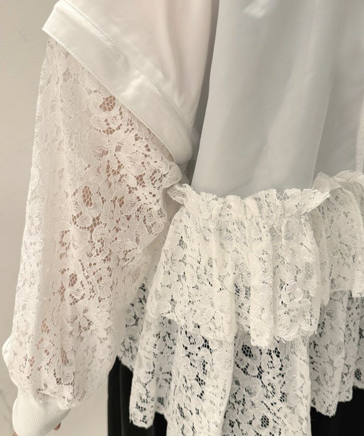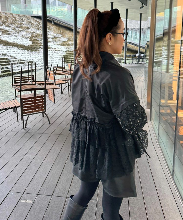 カジュアルさが魅力的なフライトジャケットもレースデザインがドッキングする事で大人可愛いを演出。 お袖部分は取り外し可能で、半袖ブルゾンとしても着用出来る2way仕様になっています。