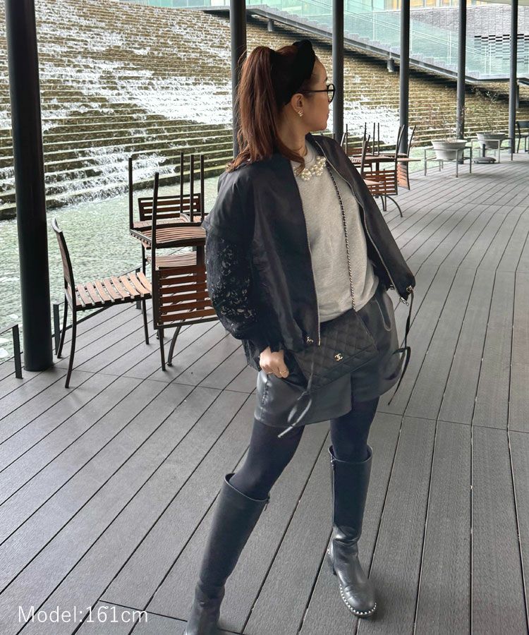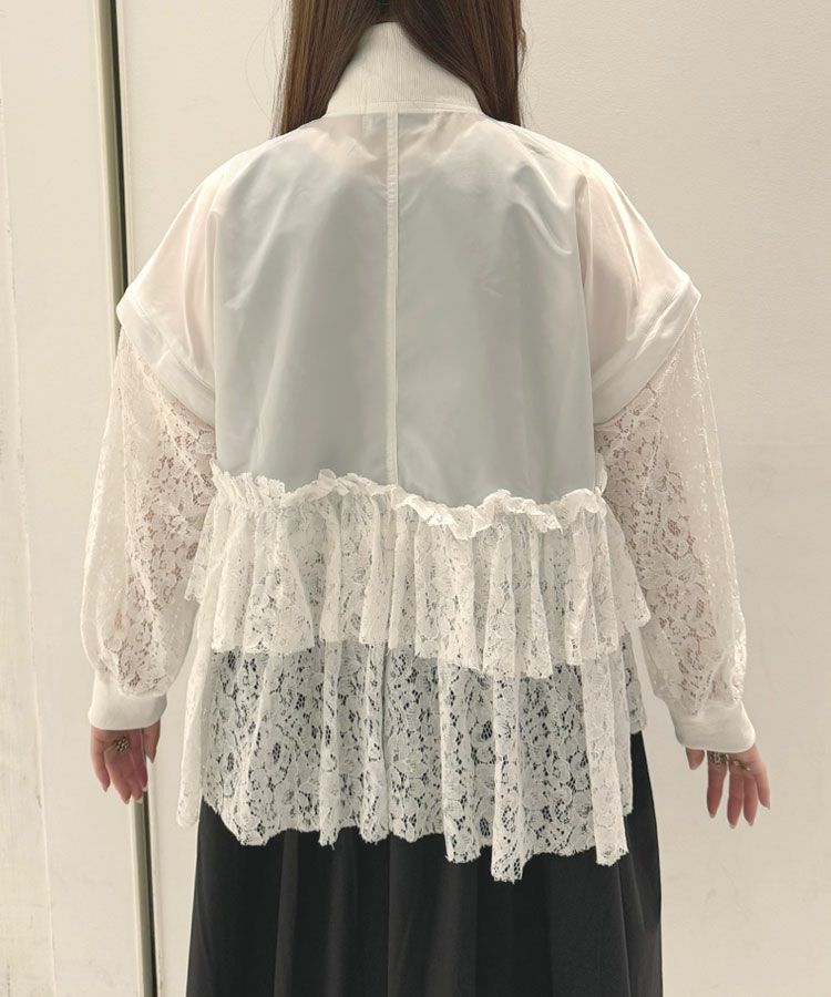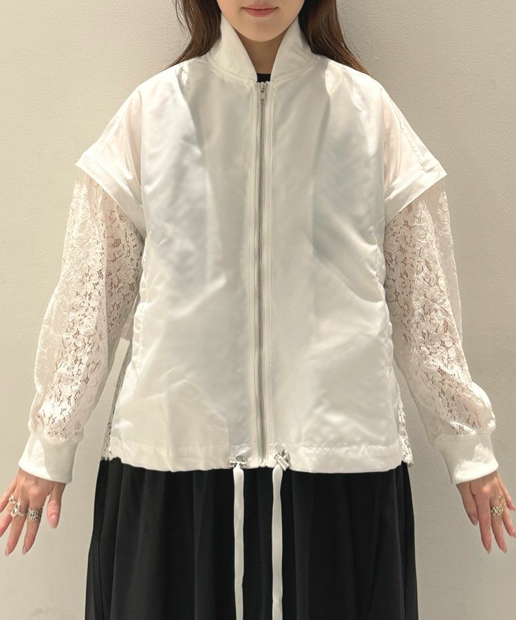 袖と背中部分がレースになったMA-1風デザインのブルゾン。