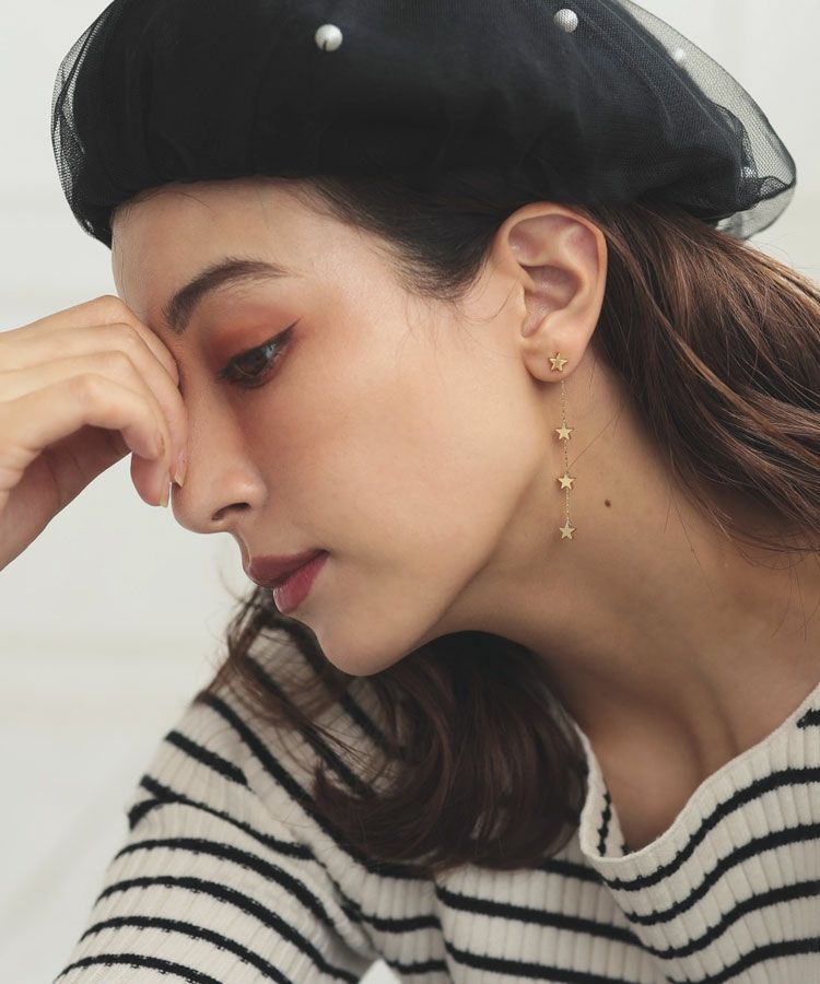 華奢なスターモチーフが連なるピアス。