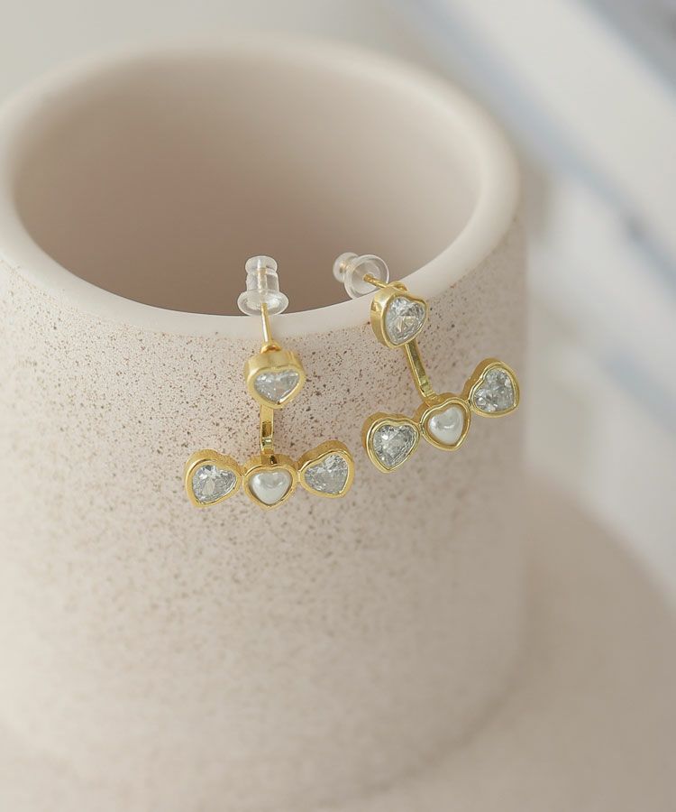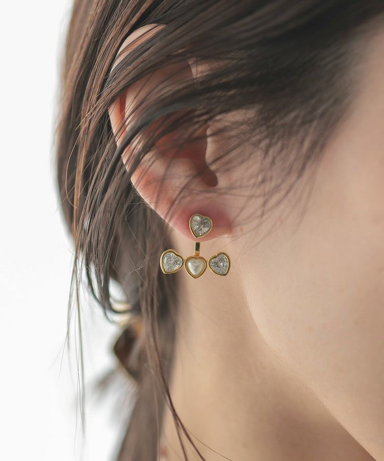 ラインストーンとパールのミニハートが連なったなんとも愛らしいピアス。