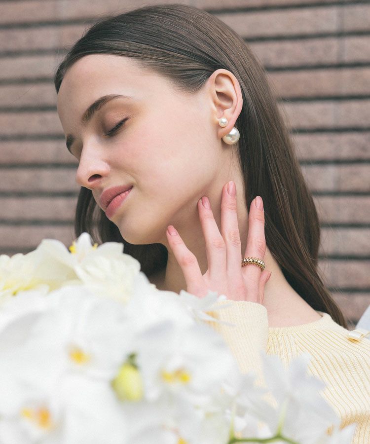 ミオリーさんが付けてるのを観て素敵だな!と思い購入しました。初めは付けるのに少し時間がかかったけど、すぐに慣れました。 パールはキレイめでもカジュアルでもいけるのでお勧めです!
