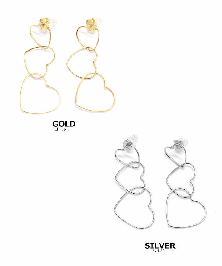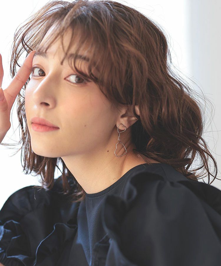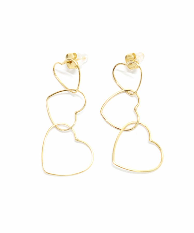 今季トレンドモチーフのハートが華奢なラインで連なるピアス。