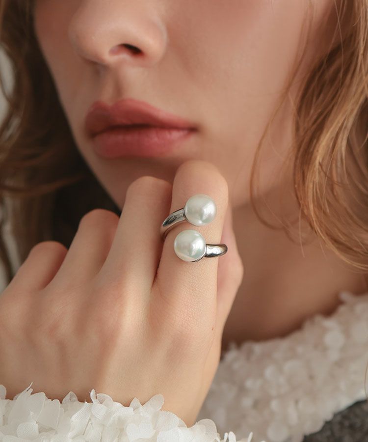 大粒のパールが手元を華やかにしてくれる、ダブルのパールをあしらったリング。