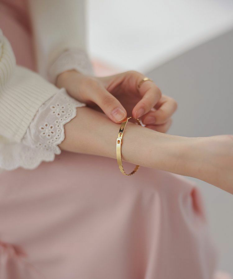 華奢で繊細な六角形を連ねたハニカムモチーフのブレスレット。