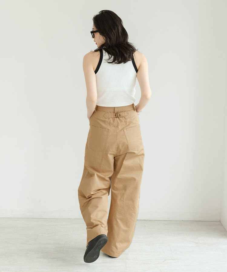 ボトムはお気に入りのコラボパンツにゆるめのシルエットで、全体にカジュアルフェミニンでリラックススタイルに◎