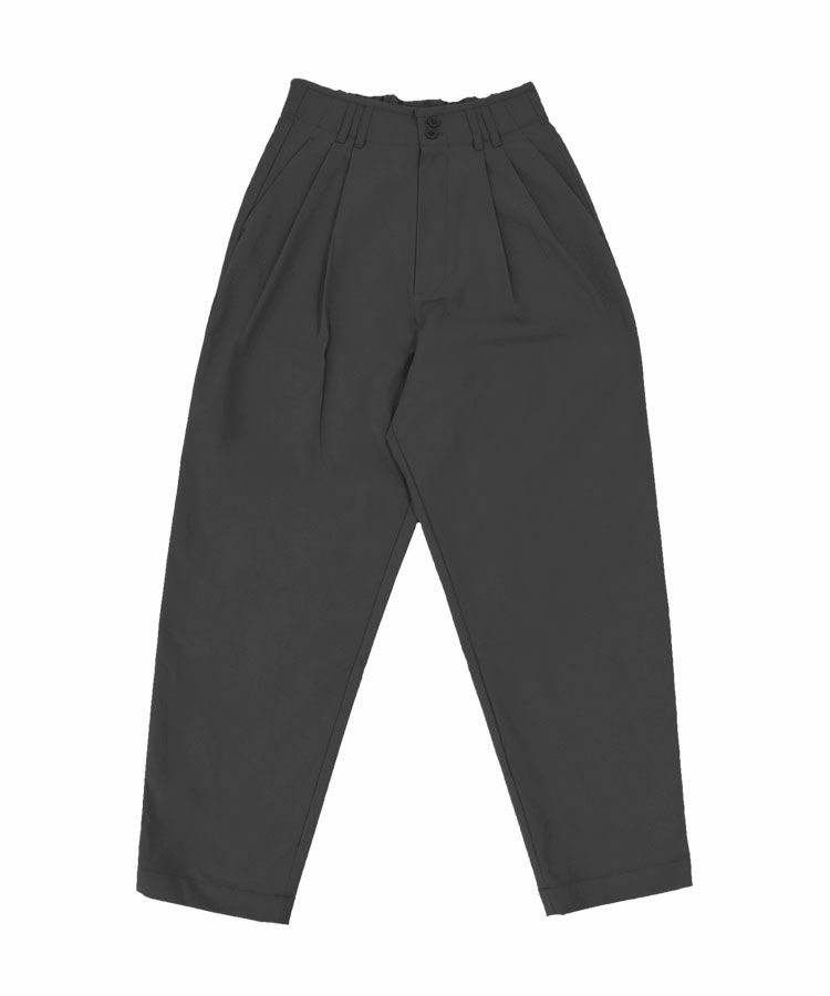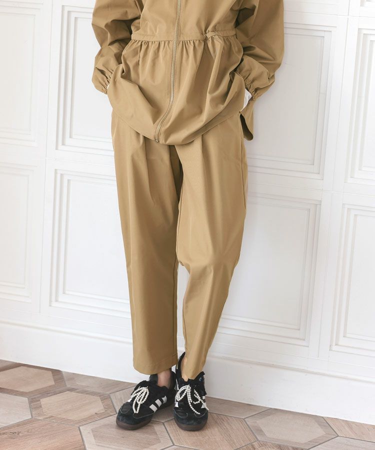 リラックス感のあるシルエットが魅力の撥水ハイウエストパンツにpufeのアメスリを合わせて大人カジュアルに