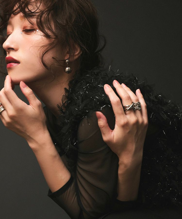 ラメとボリューム感で華やかさを最大限に演出。